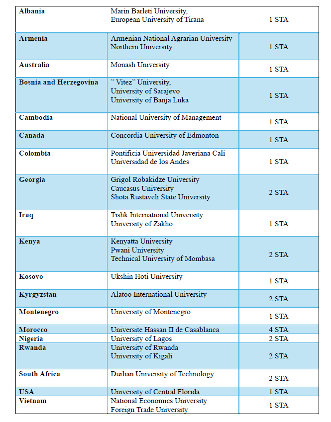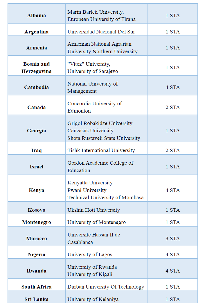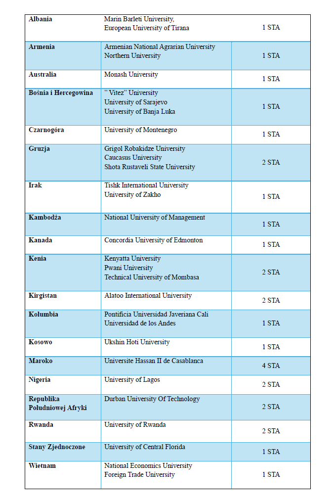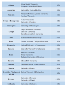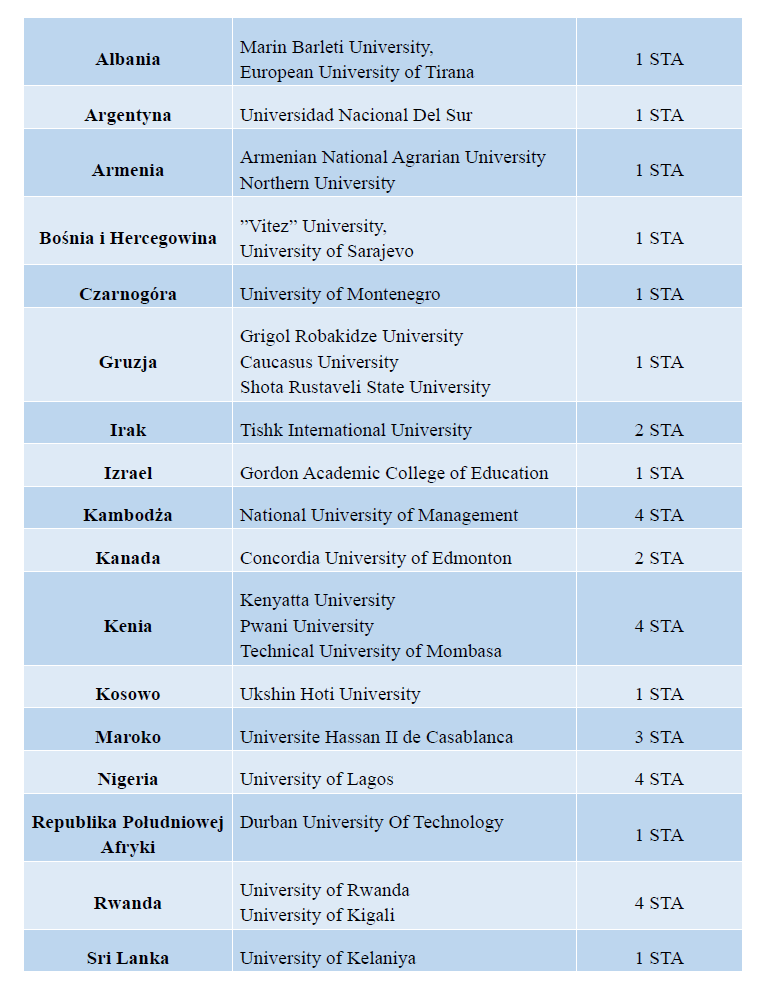 - Wyjazdy w celach dydaktycznych i szkoleniowych mogą być realizowane jedynie do uczelni partnerskich uczestniczących w projekcie 2023-1-PL01-KA171-HED-000121878, których wykaz opublikowany jest na stronie Działu Spraw Międzynarodowych US.